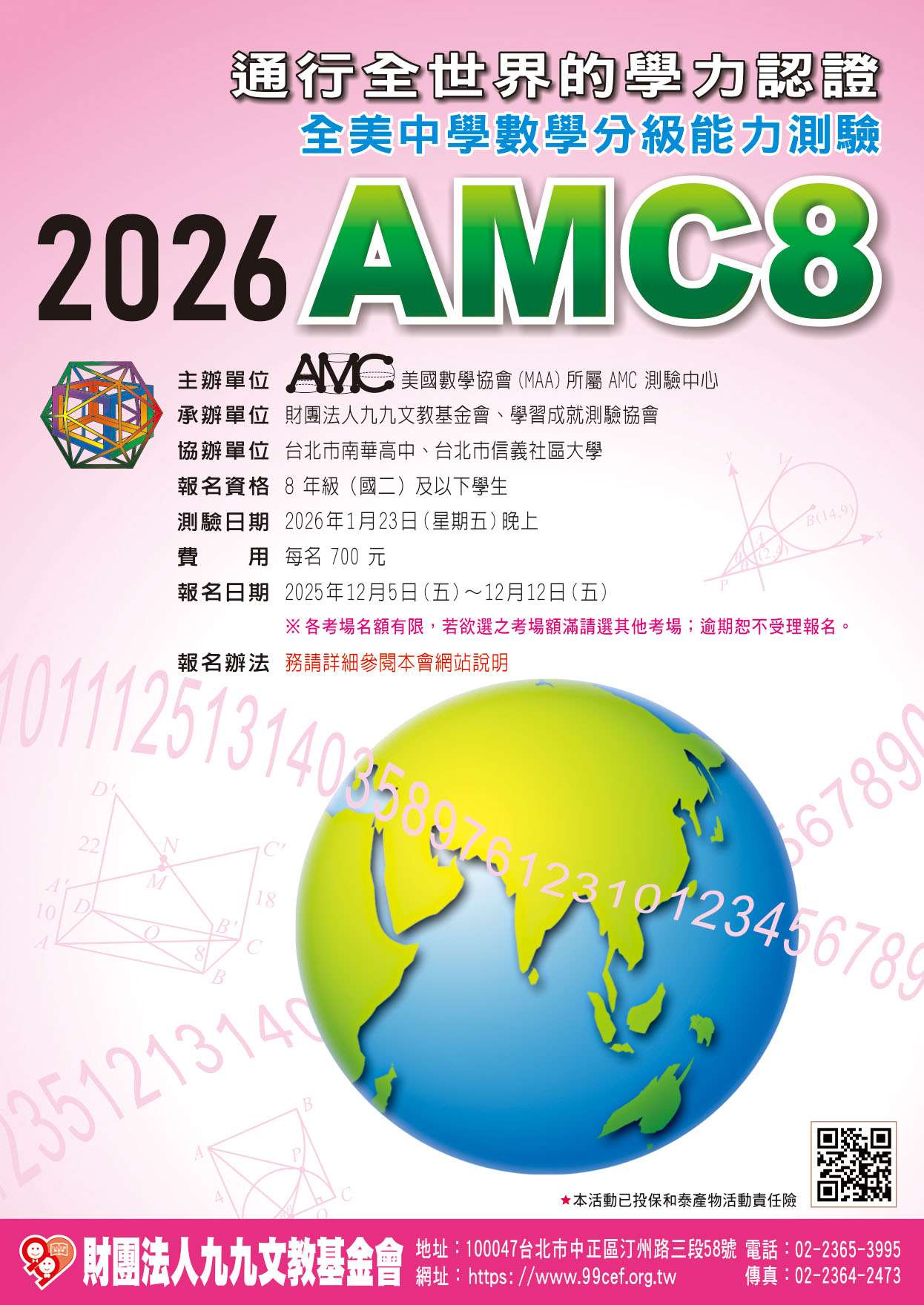 AMC 8數學競試相關資訊,鼓勵同學踴躍報名