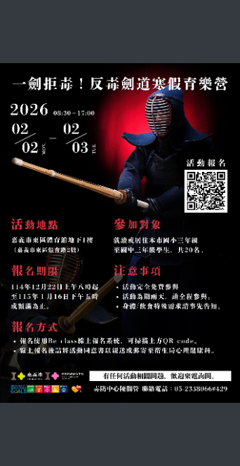 (三)參加對象:就讀或居住嘉義市國小三年級至國中三年級 學生,名額共20名。
