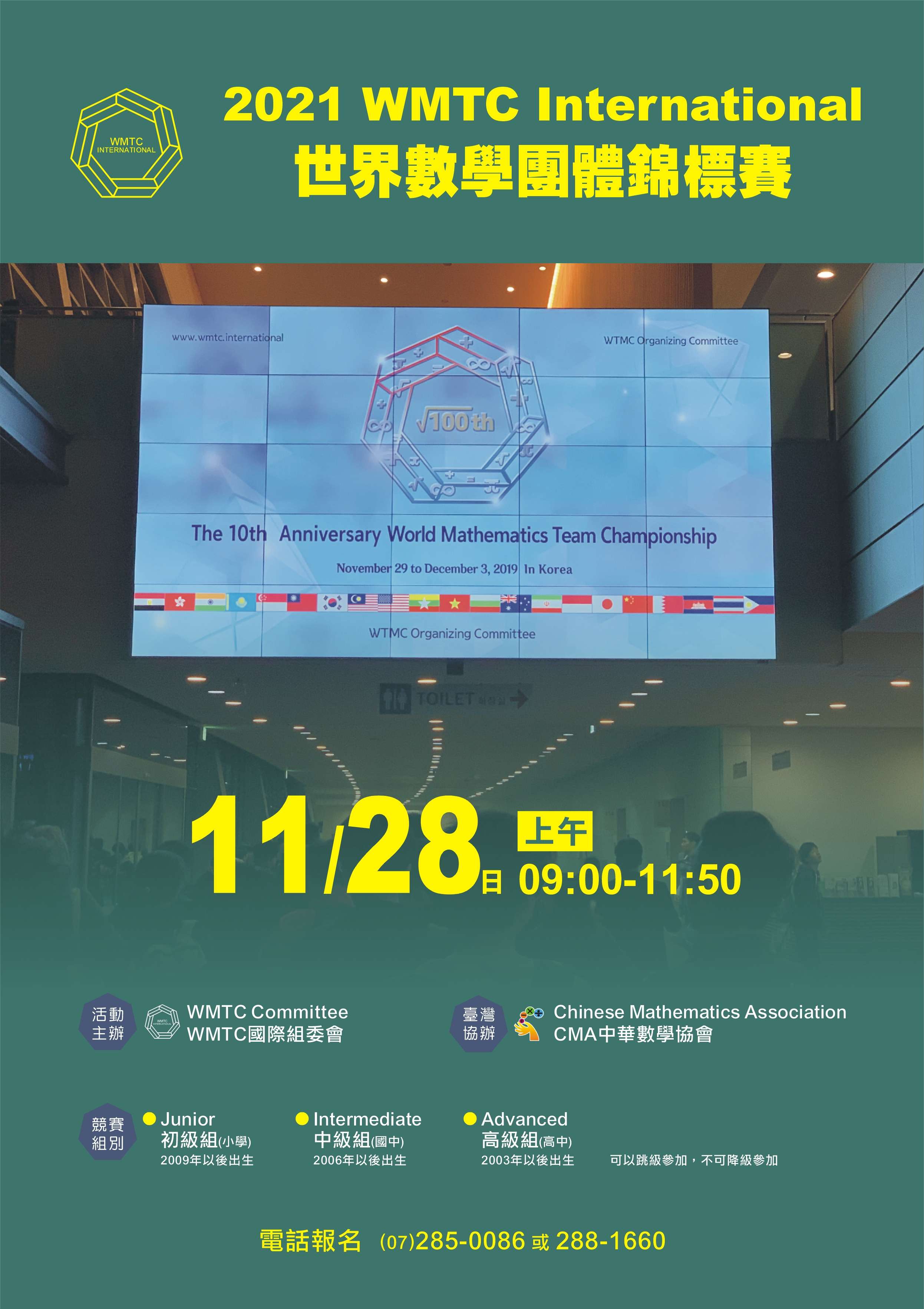 二、檢附「WMTC International世界數學團體錦標賽」競賽活動企劃書及海報,供 欲報名者參閱。
